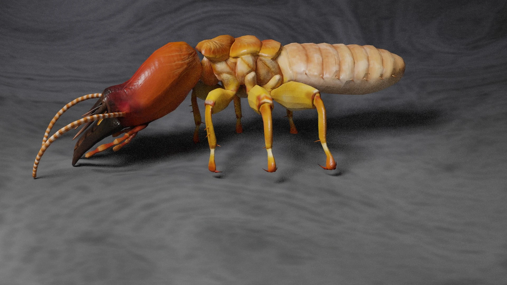 A mutant termite creature designed for real-time game environments and cinematic close-ups.