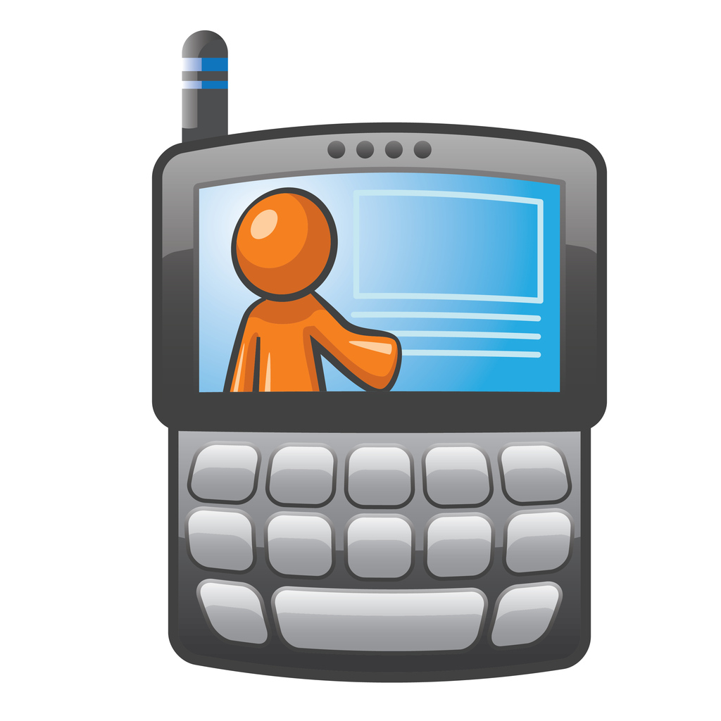 Orange Man on a PDA phone with blank buttons. Simple illustration for communications. Keywords: orange man, graphic, orange, man, illustration, clipart, clip art, cute, vibrant, glossy, character, shiny, lustrous, business, computer, corporate, electronic, global, information, internet, media, modern, science, software, solution, tech, technology, web, cell, cellphone, communicate, communication, connectivity, data, display, electronics, entrepreneur, handheld, isolated, message, mobile, organizer, pda, phone, smart, telephone, wireless