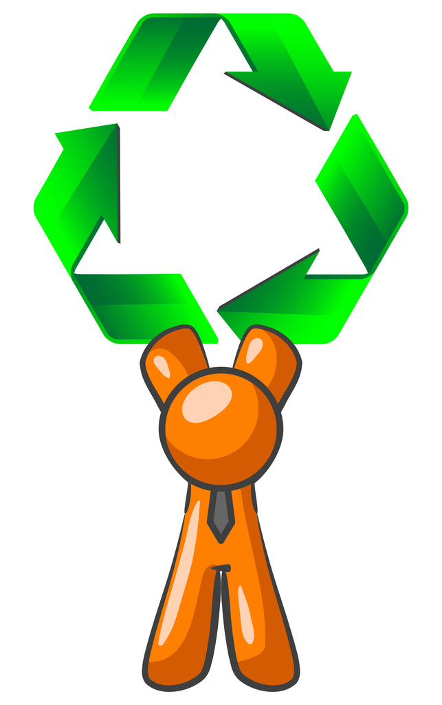 An orange man holding up a large recycling symbol. Good concept for environmental subjects. Keywords: Graphic, Illustration, Bright, Vibrant, Glossy, Shiny, Man, Character, Cute, Element, Simple, Clip Art, abstract, care, circle, clean, concept, conservation, cycle, design, ecology, environment, environmental, garbage, global, green, nature, object, pattern, protection, recycle, recycling, reserve, reuse, save, shape, sign, single, symbol, trace, waste, white, holding, environmentalist, activist, professional, orange