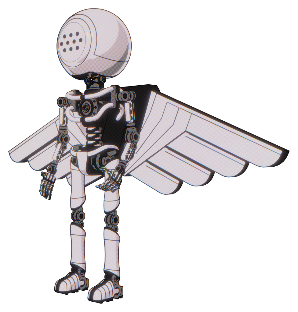 Robot containing dots array face and light chest exoshielding and pilot's wings assembly and no chest plating and ultralight foot exosuit. White halftone toon. Facing right view.