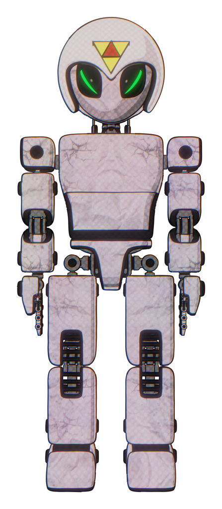 Automaton containing grey alien style head and green demon eyes and triangle design and helmet and light chest exoshielding and prototype exoplate chest and prototype exoplate legs. Sketch pad light.