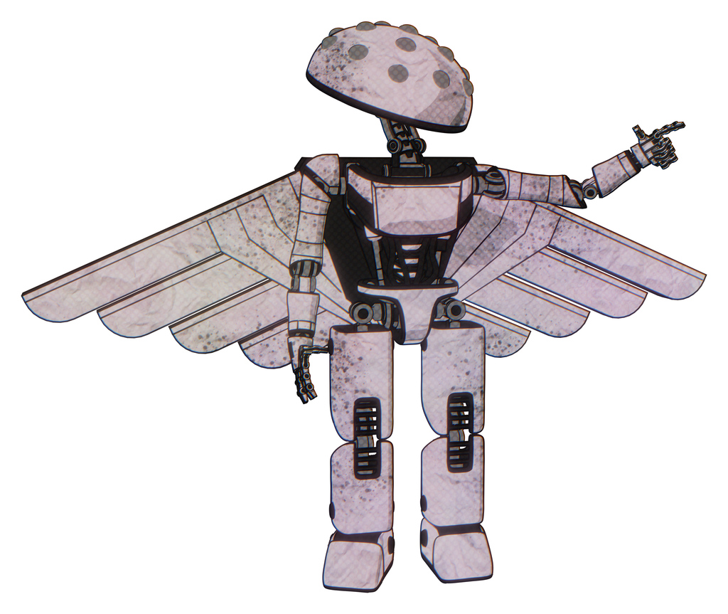 Robot containing metal knucklehead design and light chest exoshielding and ultralight chest exosuit and pilot's wings assembly and prototype exoplate legs. Sketch pad dirty smudge.