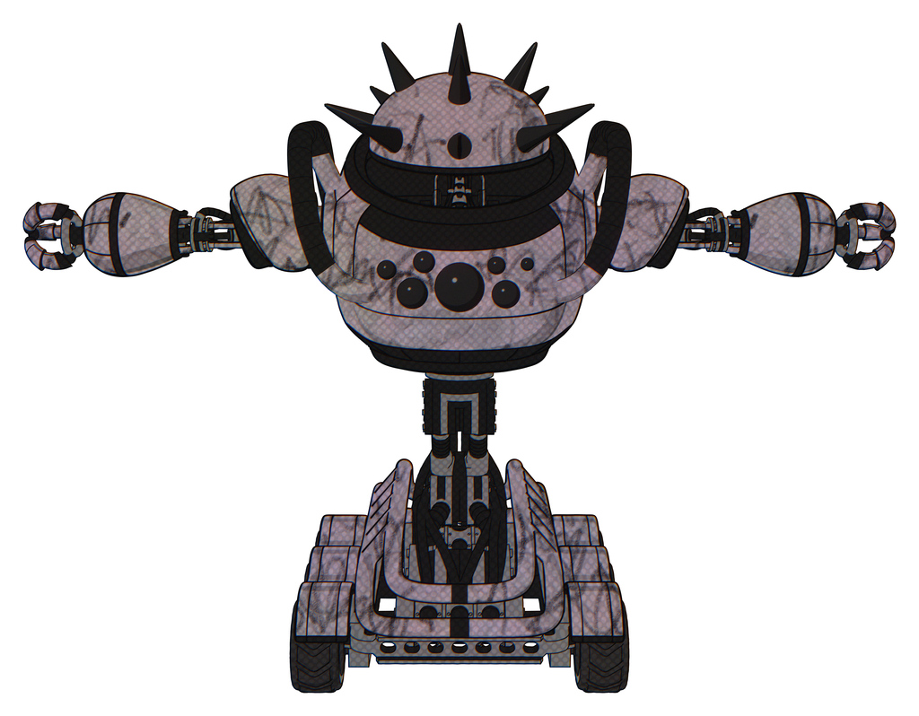 Automaton containing thorny domehead design and heavy upper chest and chest compound eyes and six-wheeler base. Dark sketch random doodle. T-pose.