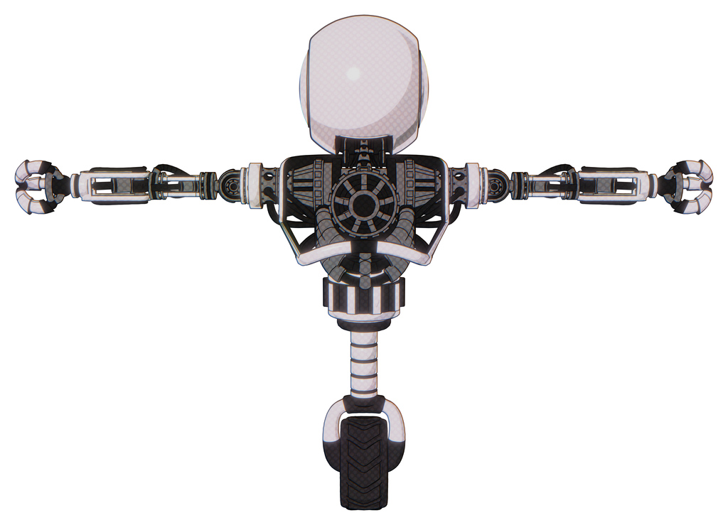 Automaton containing round head and heavy upper chest and no chest plating and unicycle wheel. White halftone toon. T-pose.