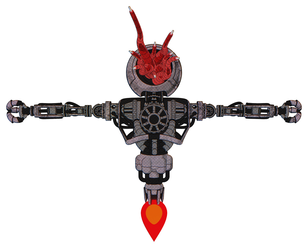 Automaton containing bright red jellyfish tentacles fiber optic design and heavy upper chest and no chest plating and jet propulsion. Dark dirty scrawl sketch. T-pose.