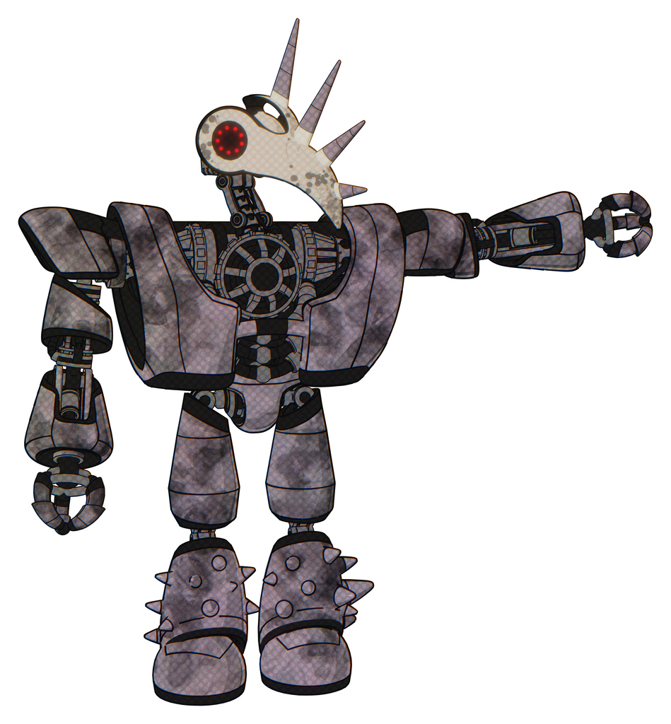 Automaton containing bird skull head and red led circle eyes and heavy upper chest and heavy mech chest and light leg exoshielding and spike foot mod. Sketch pad cloudy smudges.