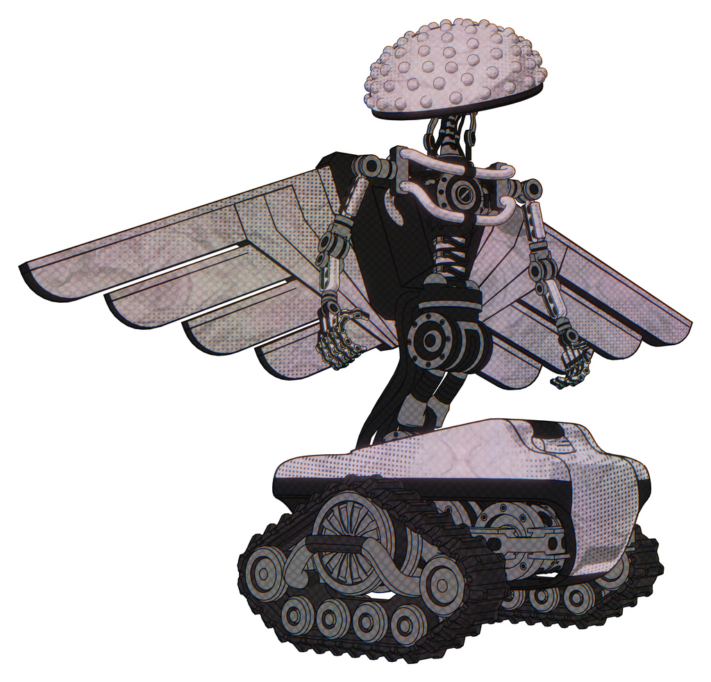 Cyborg containing knucklehead design and light chest exoshielding and pilot's wings assembly and no chest plating and tank tracks. Sketch pad dots pattern. Hero pose.