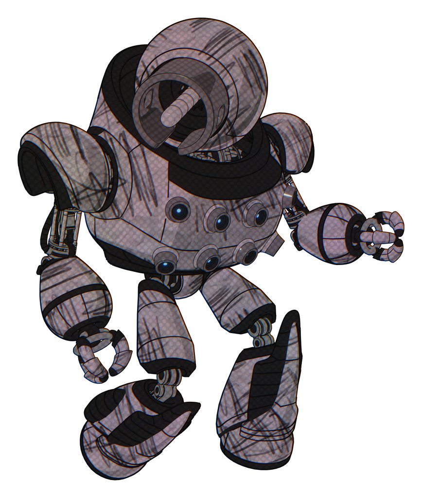 Mech containing cable connector head and heavy upper chest and chest energy sockets and light leg exoshielding and stomper foot mod. Dark sketchy. Fight or defense pose..