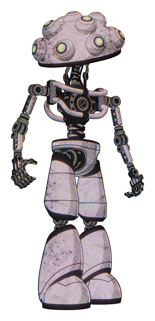 Automaton containing techno multi-eyed domehead design and light chest exoshielding and no chest plating and light leg exoshielding. Sketch pad dirty smudge. Hero pose.