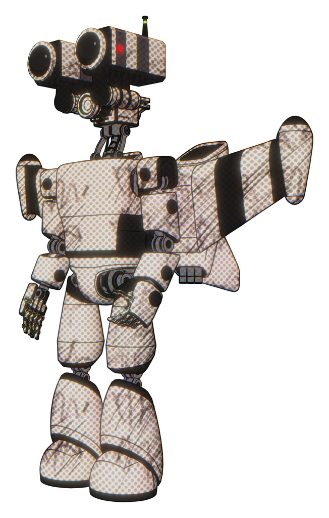Automaton containing dual retro camera head and light chest exoshielding and prototype exoplate chest and stellar jet wing rocket pack and light leg exoshielding. Halftone sketch. Facing right view.