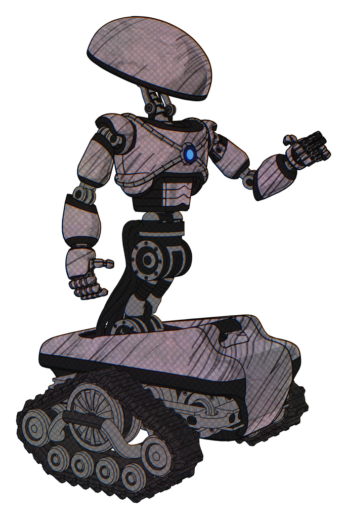 Automaton containing dome head and light chest exoshielding and blue energy core and tank tracks. Dark sketch lines. Interacting.