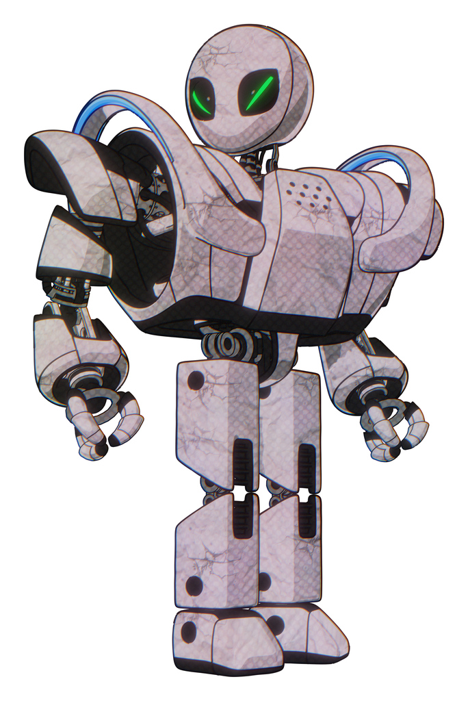 Robot containing grey alien style head and green demon eyes and heavy upper chest and heavy mech chest and battle mech chest and prototype exoplate legs. Sketch pad light. Hero pose.