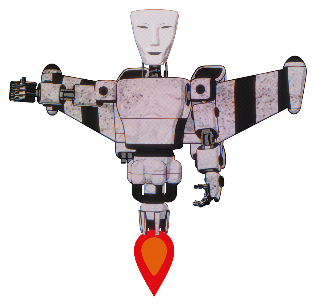 Bot containing humanoid face mask and light chest exoshielding and prototype exoplate chest and stellar jet wing rocket pack and jet propulsion. Sketch pad dirty smudge.
