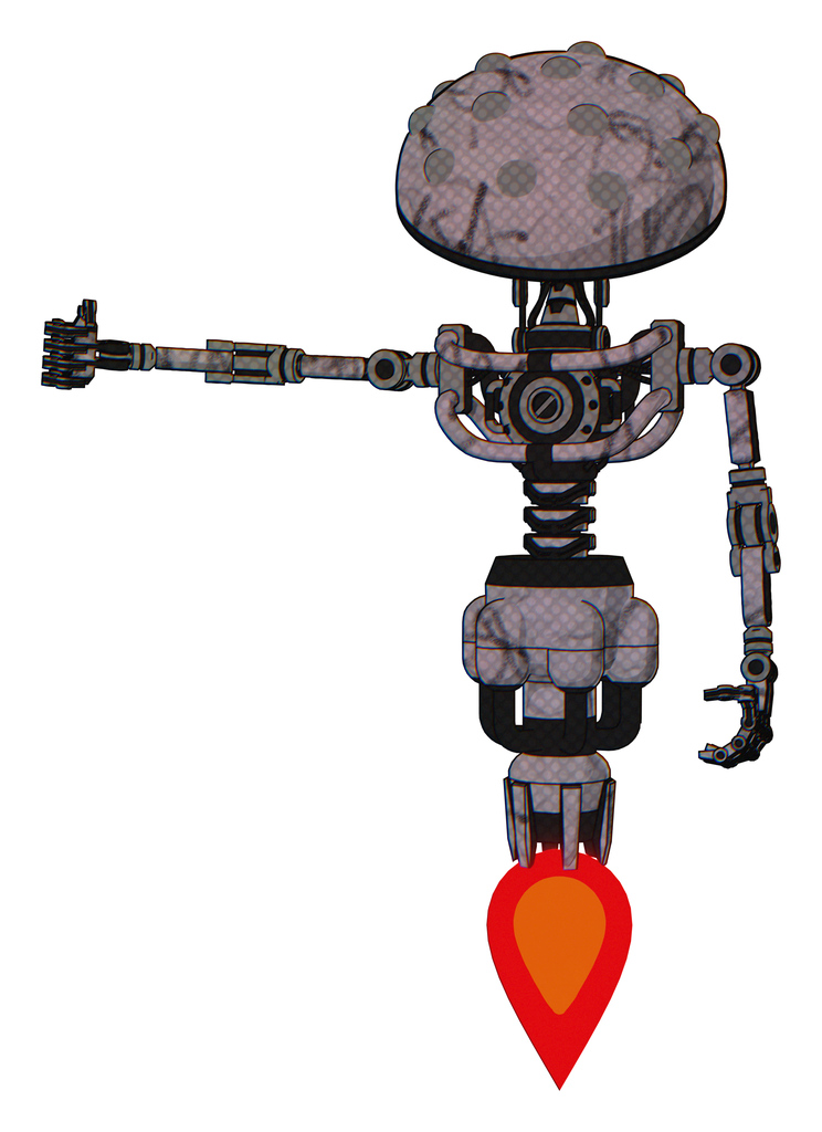Cyborg containing metal knucklehead design and light chest exoshielding and no chest plating and jet propulsion. Dark sketch random doodle. Arm out holding invisible object..