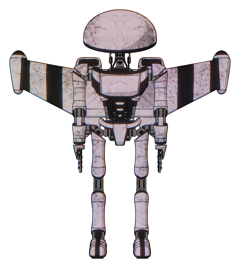 Bot containing dome head and light chest exoshielding and ultralight chest exosuit and stellar jet wing rocket pack and ultralight foot exosuit. Sketch pad dirty smudge. Front view.