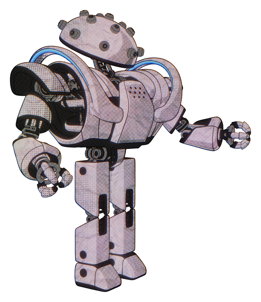 Robot containing plughead dome design and heavy upper chest and heavy mech chest and battle mech chest and prototype exoplate legs. Sketch pad dots pattern. Interacting.