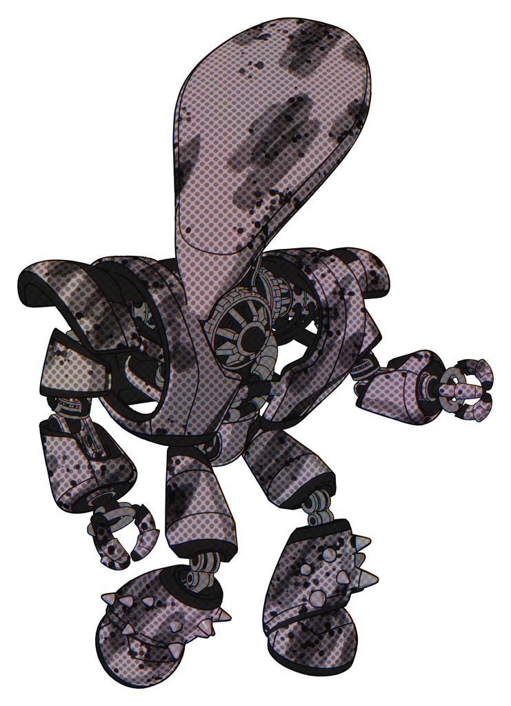 Automaton containing flat elongated skull head and heavy upper chest and heavy mech chest and light leg exoshielding and spike foot mod. Smudgy sketch. Fight or defense pose..