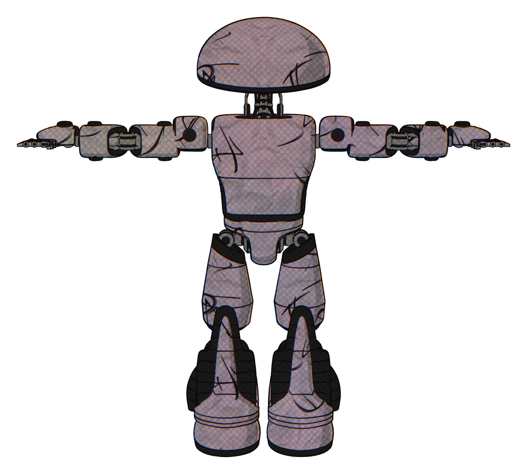 Robot containing dome head and light chest exoshielding and prototype exoplate chest and light leg exoshielding and stomper foot mod. Dark sketch doodle. T-pose.