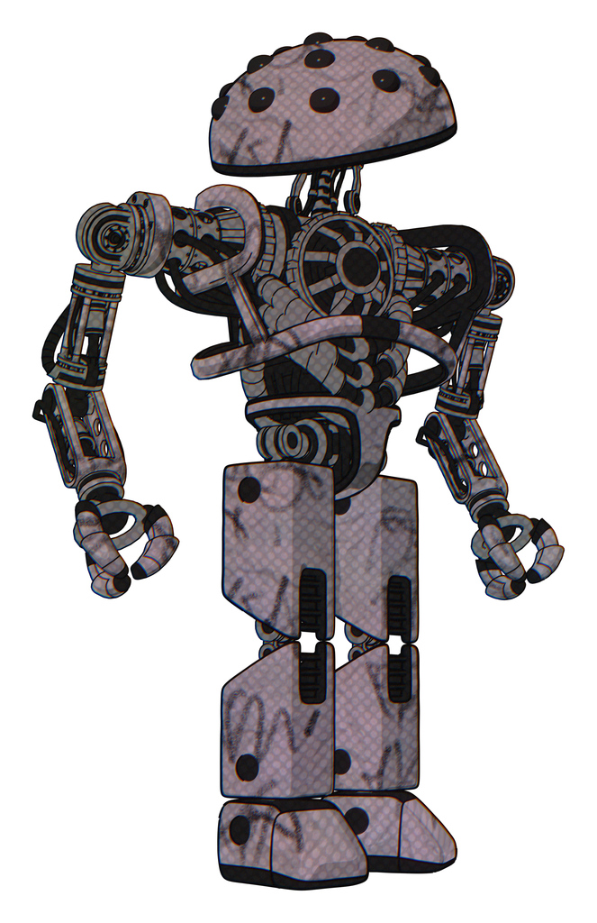 Mech containing black sphere cam design and heavy upper chest and no chest plating and prototype exoplate legs. Dark sketch random doodle. Hero pose.