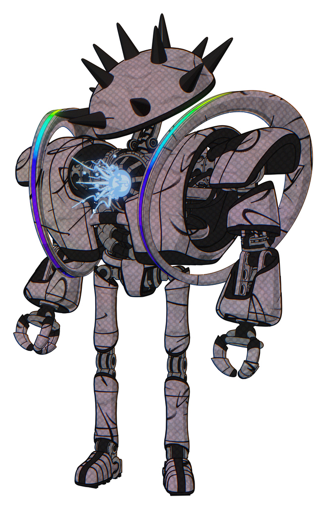 Automaton containing thorny domehead design and heavy upper chest and heavy mech chest and spectrum fusion core chest and ultralight foot exosuit. Dark sketch doodle.