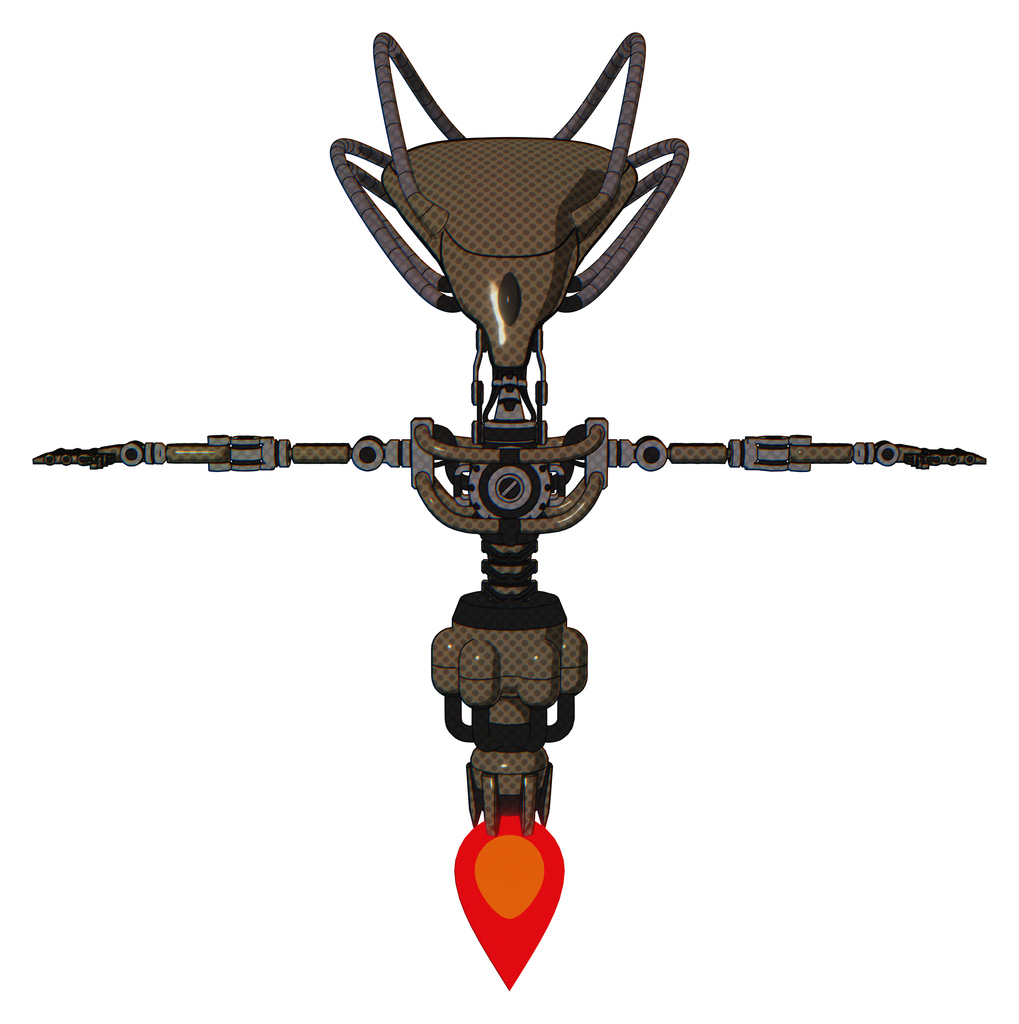 Bot containing flat elongated skull head and and light chest exoshielding and no chest plating and jet propulsion. Light brown halftone. T-pose.