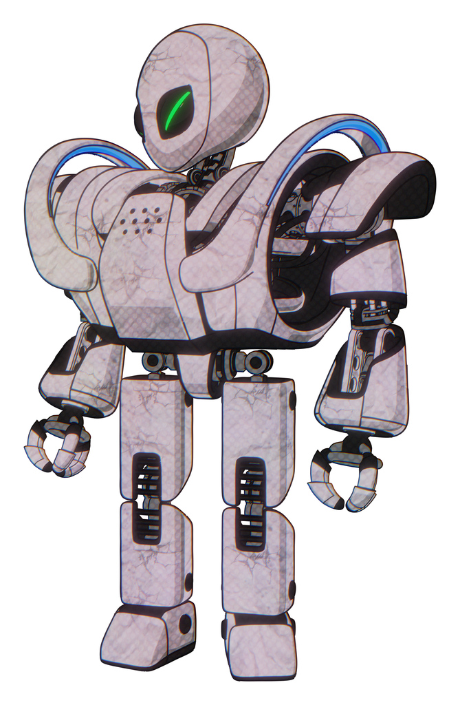 Robot containing grey alien style head and green demon eyes and heavy upper chest and heavy mech chest and battle mech chest and prototype exoplate legs. Sketch pad light.
