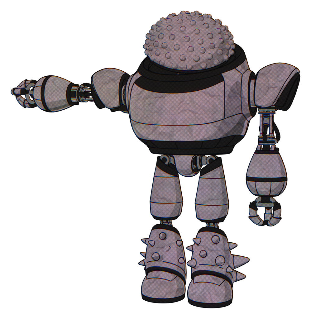 Automaton containing knucklehead design and heavy upper chest and light leg exoshielding and spike foot mod. Dark sketch. Arm out holding invisible object..