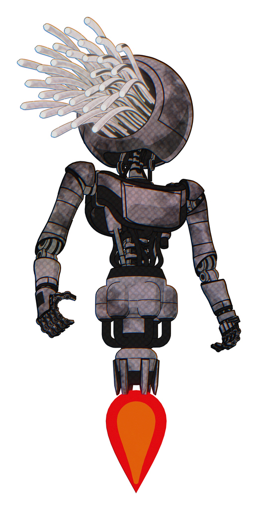 Mech containing round fiber optic connectors head and light chest exoshielding and ultralight chest exosuit and jet propulsion. Sketch pad cloudy smudges. Hero pose.