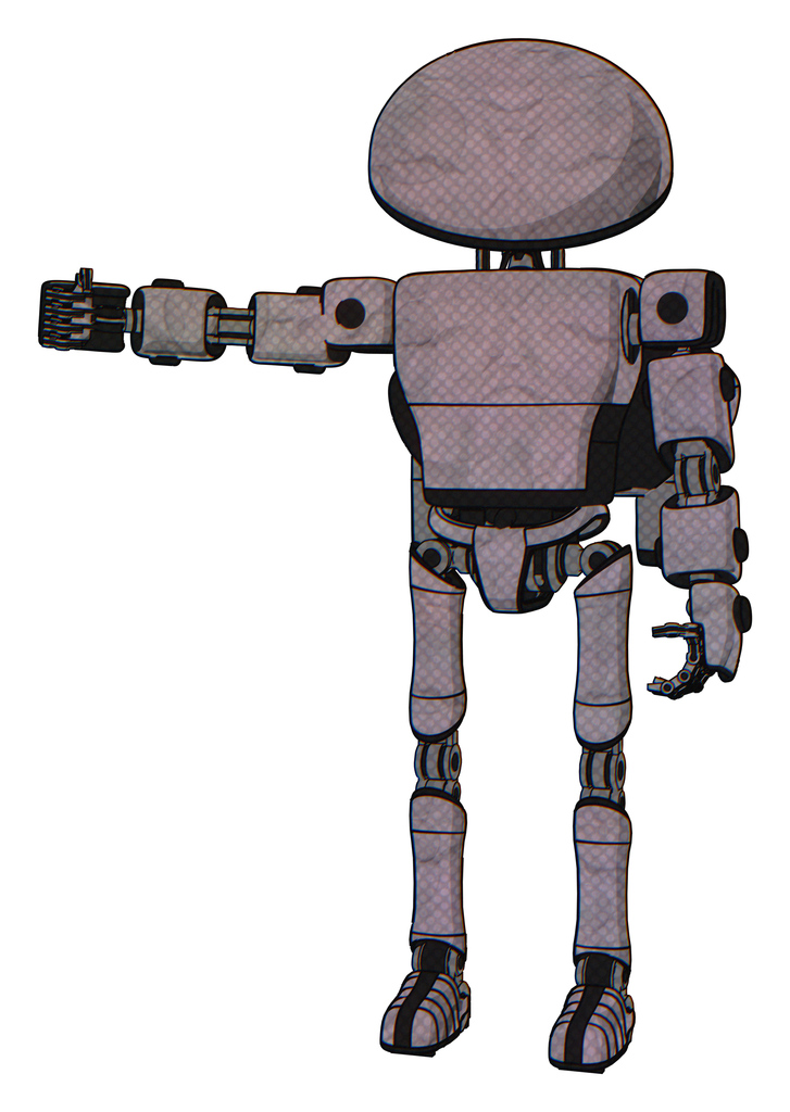 Cyborg containing dome head and light chest exoshielding and prototype exoplate chest and rocket pack and ultralight foot exosuit. Dark sketch. Arm out holding invisible object..