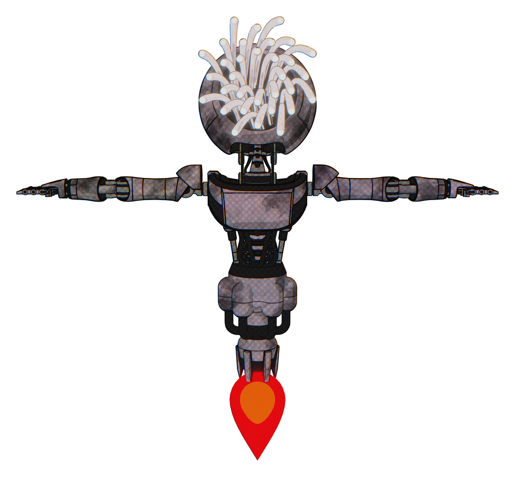 Mech containing round fiber optic connectors head and light chest exoshielding and ultralight chest exosuit and jet propulsion. Sketch pad cloudy smudges. T-pose.