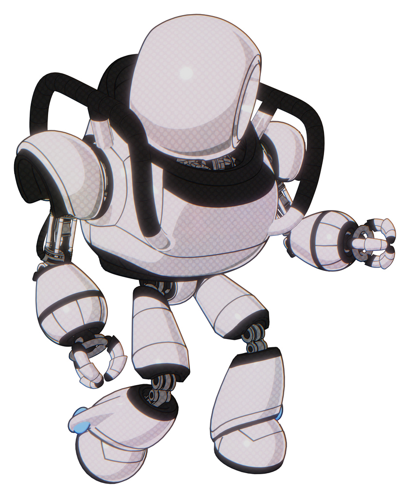 Bot containing round head and heavy upper chest and light leg exoshielding. White halftone toon. Fight or defense pose..