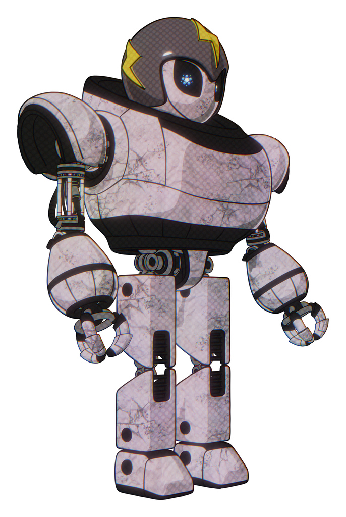 Droid containing grey alien style head and electric eyes and lightning bolts and gray helmet and heavy upper chest and prototype exoplate legs. Sketch pad. Facing left view.