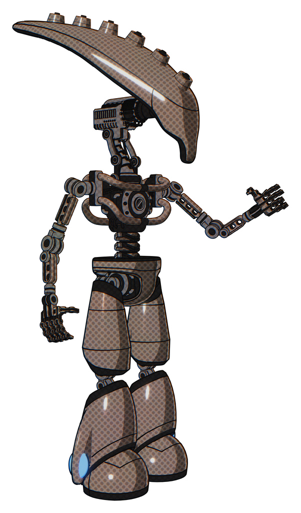 Droid containing flat elongated skull head and light chest exoshielding and no chest plating and light leg exoshielding. Khaki halftone. Interacting.