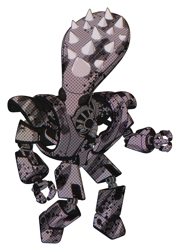 Droid containing flat elongated skull head and spikes, and heavy upper chest and heavy mech chest and prototype exoplate legs. Smudgy sketch. Fight or defense pose..