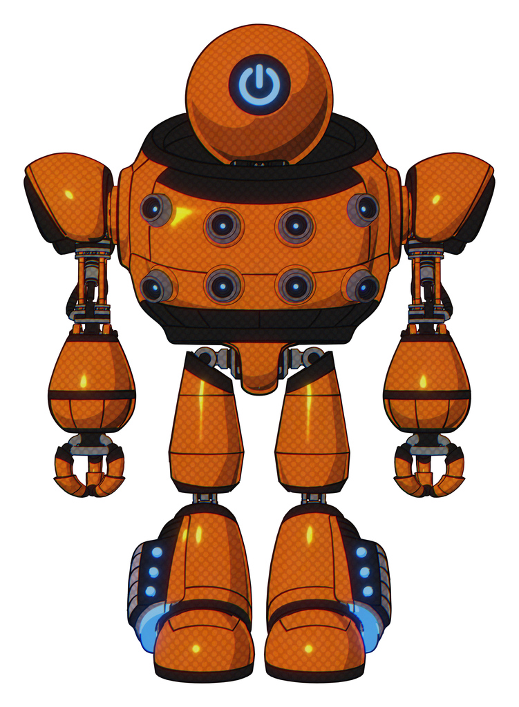 Cyborg containing elements: dual retro camera head, power symbol head, heavy upper chest, chest energy sockets, light leg exoshielding, megneto-hovers foot mod. Material: Secondary orange halftone.