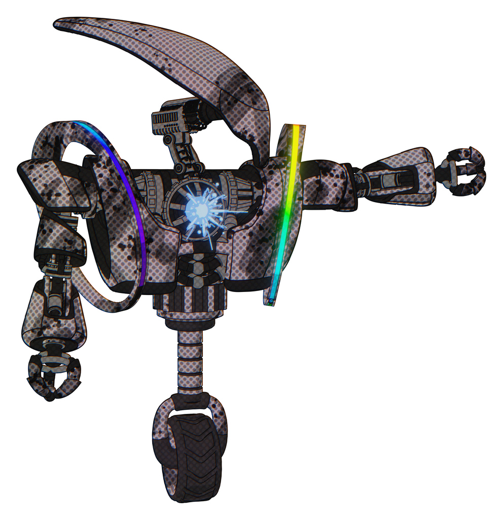 Automaton containing flat elongated skull head and heavy upper chest and heavy mech chest and spectrum fusion core chest and unicycle wheel. Smudgy sketch. Pointing left or pushing a button..