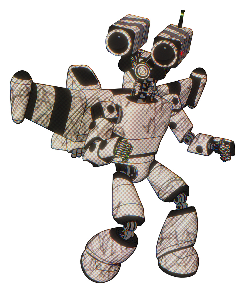 Automaton containing dual retro camera head and light chest exoshielding and prototype exoplate chest and stellar jet wing rocket pack and light leg exoshielding. Halftone sketch.