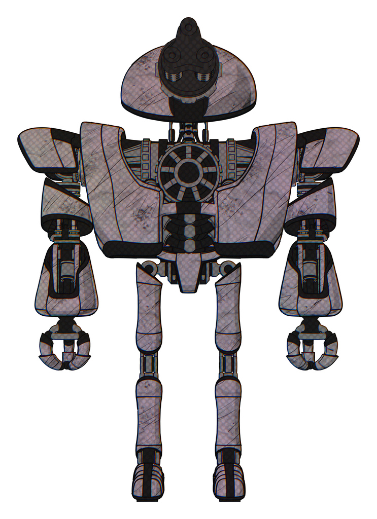 Automaton containing gatling gun face design and heavy upper chest and heavy mech chest and ultralight foot exosuit. Sketch fast lines. Front view.