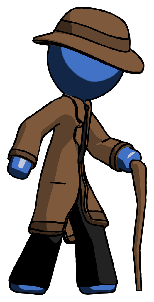 Blue Detective Man walking with hiking stick