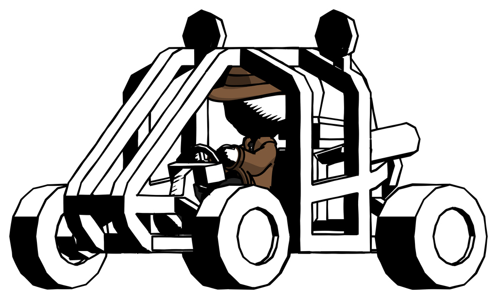Ink Detective Man riding sports buggy side angle view By Leo Blanchette