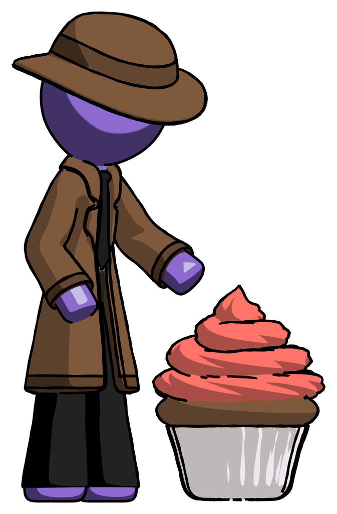 Purple Detective Man with giant cupcake dessert