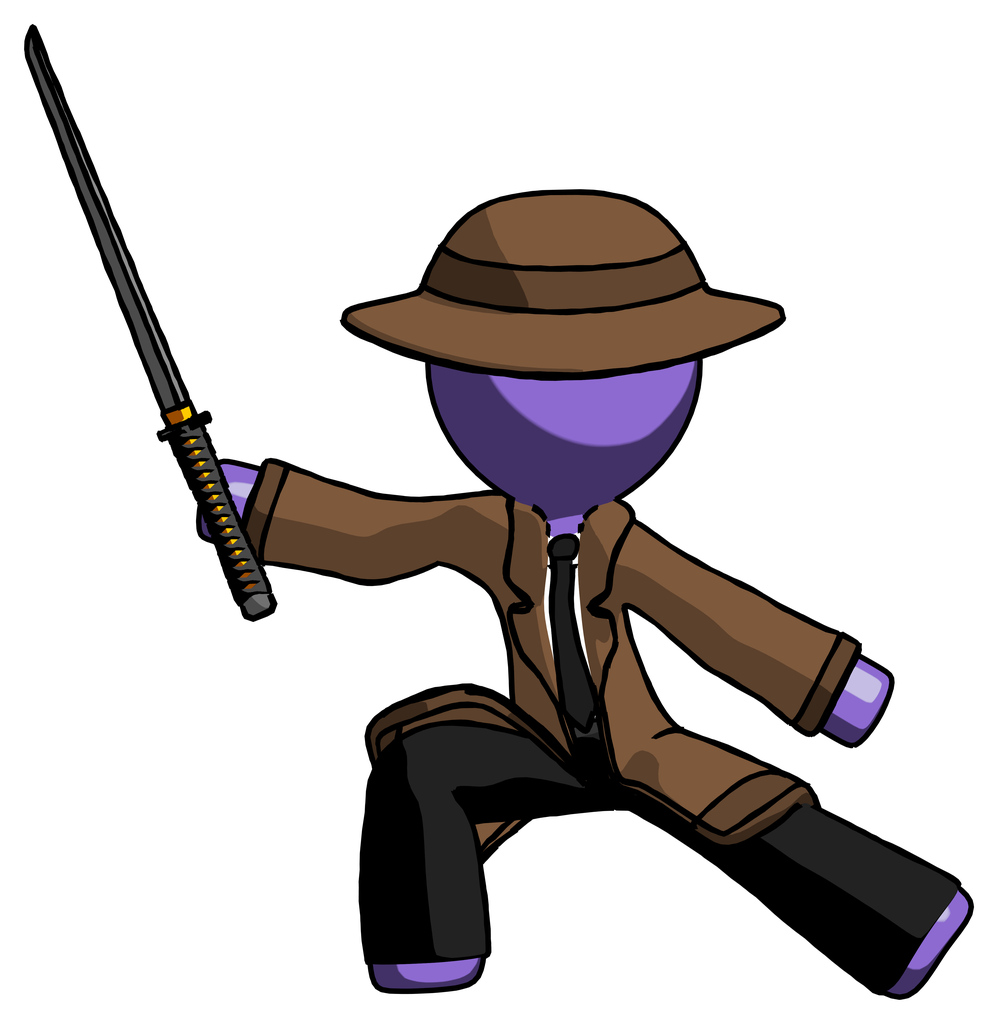 Purple Detective Man with ninja sword katana in defense pose