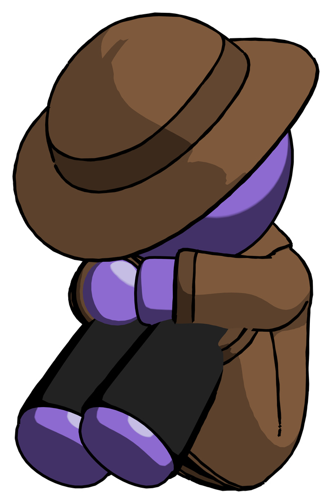 Purple Detective Man Sitting with Head Down Facing Angle Left