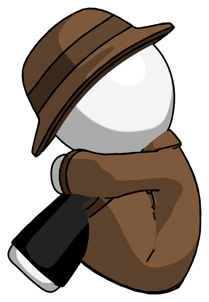 White Detective Man Sitting with Head Down Facing Sideways Left