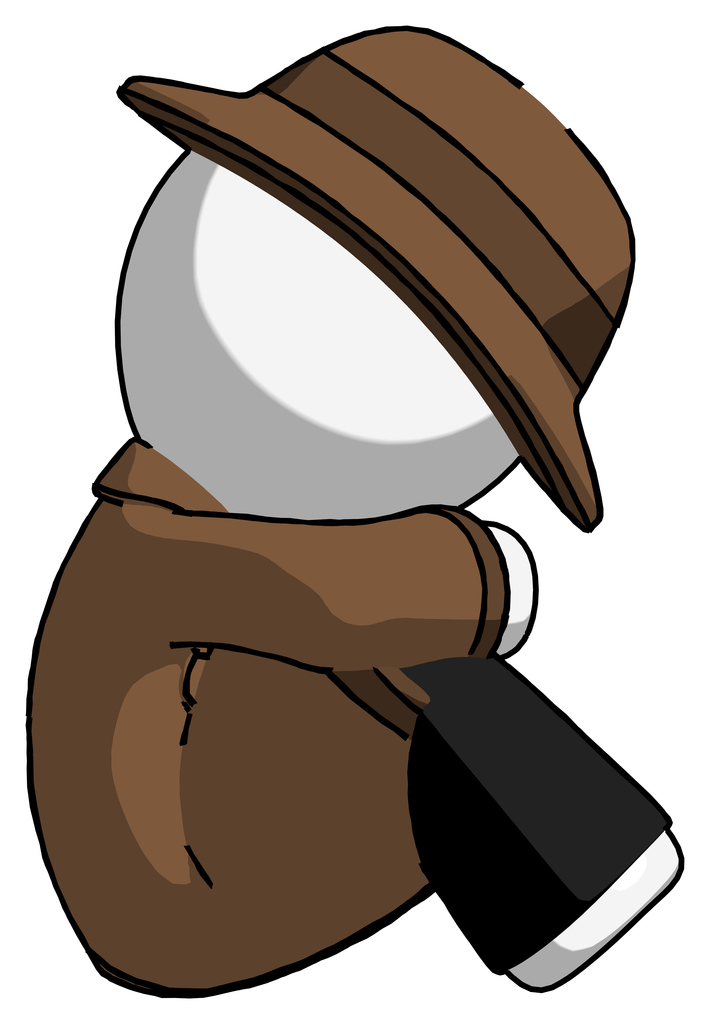 White Detective Man Sitting with Head Down Facing Sideways Right