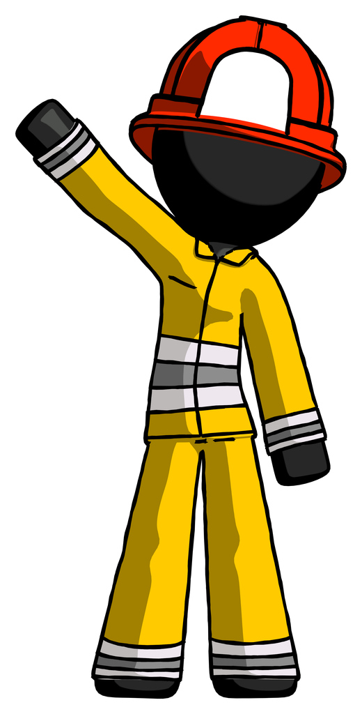 Black Firefighter Fireman Man Waving Emphatically with Right Arm