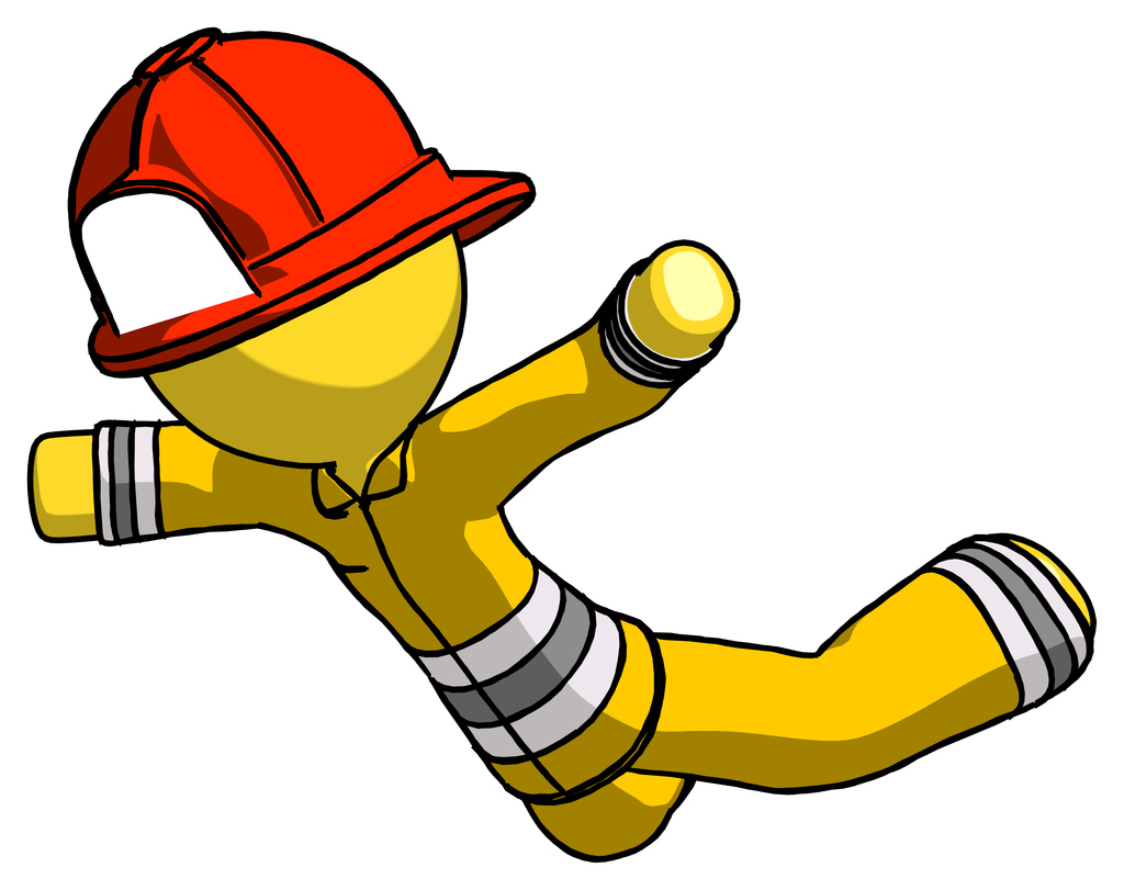 Yellow Firefighter Fireman Man skydiving or falling to death