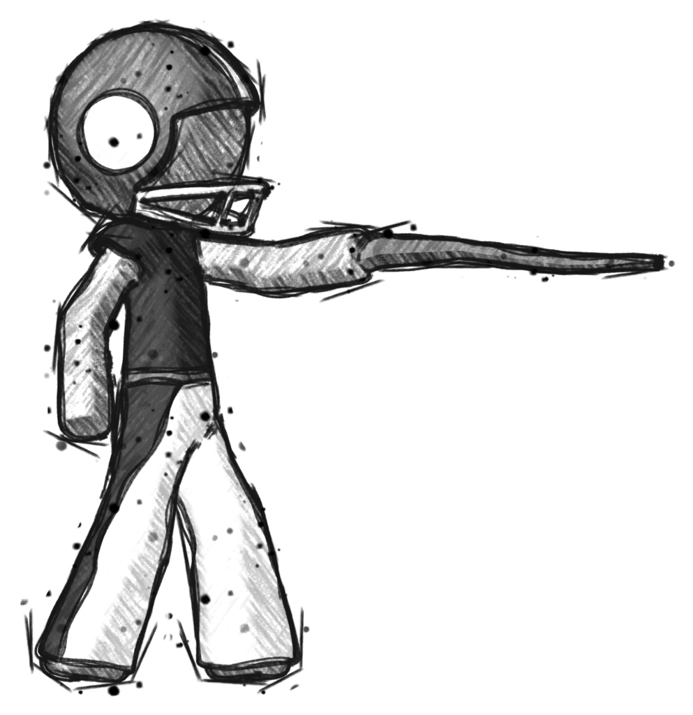 Sketch Football Player Man pointing with hiking stick
