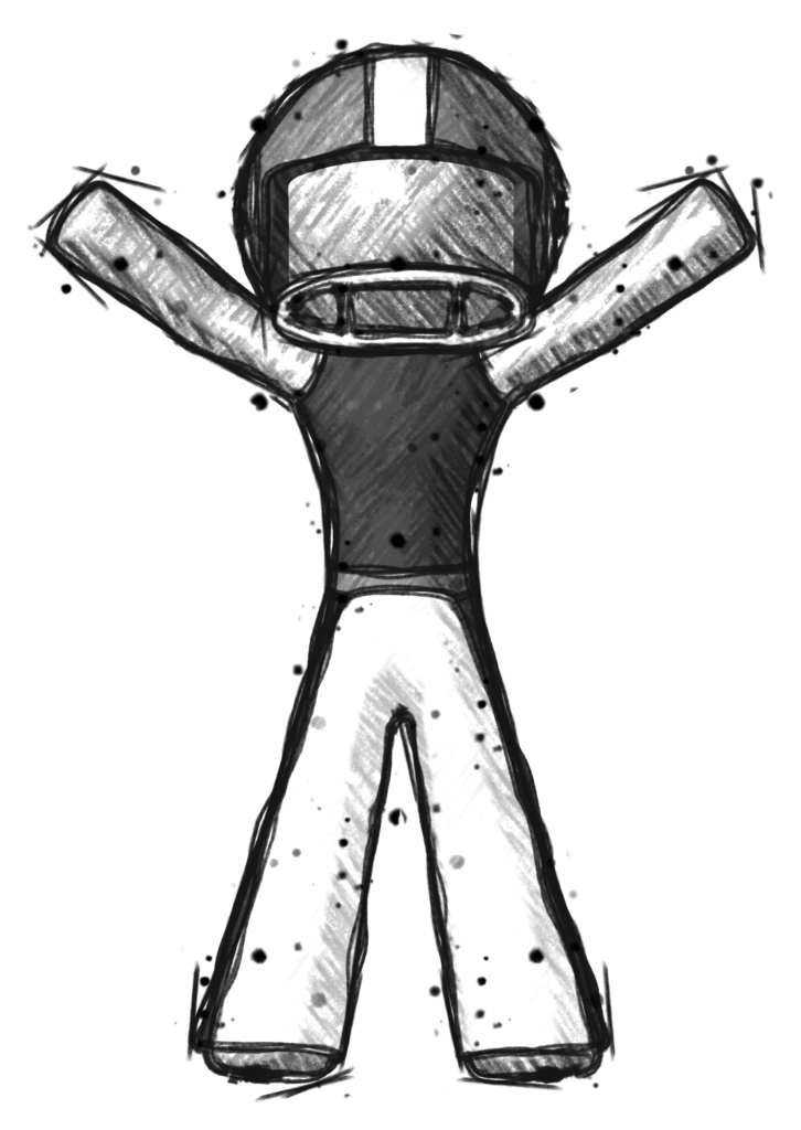 Sketch Football Player Man Surprise Pose, arms and legs out