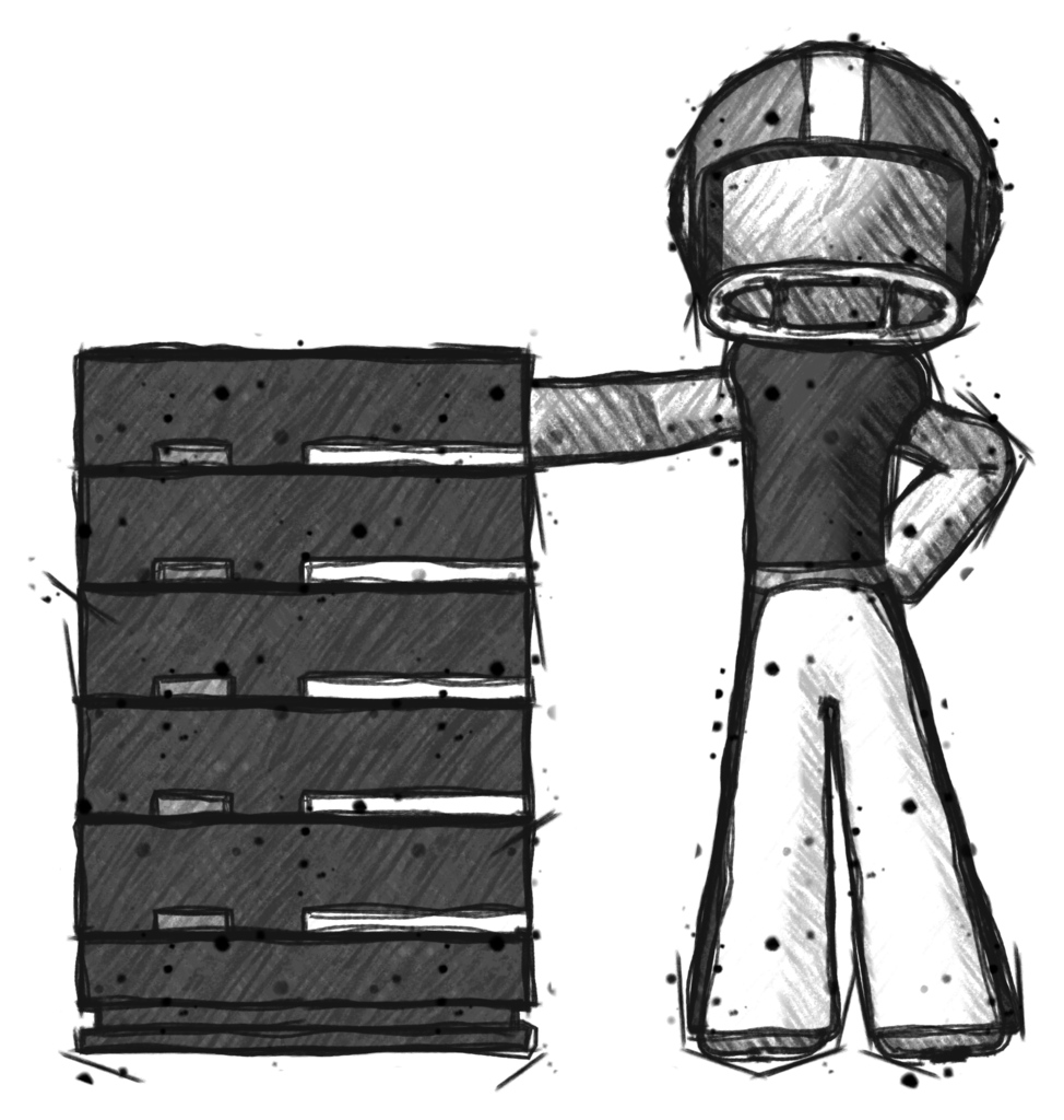 Sketch Football Player Man With Server Rack Leaning Confidently Against It